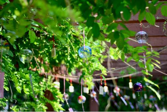在工作人员的帮助下,制作完成的一个个风铃攀上枝间,好像碧绿的藤蔓垂下了彩色的花。17日,最后一个风铃被挂起,远望长廊,茂密的藤萝掩映间,风铃折射出的绚烂色彩和着清脆的铃声,正式成为了五月的法大里一道靓丽的风景线。甚至不需要走近,在宪法大道,在图书馆后的林荫小路,在入夜后回寝的路上,同学们总能听到悦耳的铃声响成一片。听着风铃声,仿佛能看到一个个在奔向自己梦想道路上的身影。风铃不仅承载了同学们的愿望,令人心生向往的同时,似乎也催促着继续前行的脚步。