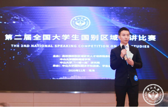 此次比赛由中山大学国际翻译学院、中山大学“一带一路”研究院及高校国别区域人才培养系联盟主办。来自中山大学、南开大学、山东大学、吉林大学、北京外国语大学、上海外国语大学等全国50余所重点高校的400余名优秀学子报名参赛。其中,陈大炜同学是我校唯一的参赛代表。经过激烈角逐,参加复赛的146名选手之中,24名选手晋级决赛。