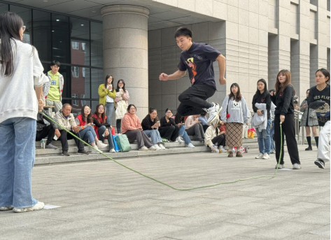 集体项目在本次运动会赛程的最后进行。在集体跳绳的赛场上,选手们精神饱满,斗志昂扬。随着裁判一声令下,大家充分展现出团结的力量。摇绳队员全神贯注,努力把握最合适的节奏;跳绳队员们则在上下翻飞的大绳间龙腾虎跃,双腿跳、单腿跳,无论哪种姿势都充分展现了选手们的朝气与自信;赛场下助威观战的同学们铆足鼓劲,呐喊助威,欢呼声接连不断,赛场内气氛不断升温。