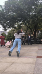 上午最后进行的比赛是单人立定跳远,选手们站在起跳线后,双脚并拢,身体直立,双目注视前方,有神而坚定。“摆臂-起跳-腾空-收腿”你跳出一个又一个的远度,给我们留下一个又一个深刻的印象。