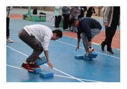 本项比赛是下午的第一项赛事。“预备,开始!”随着裁判员的一声令下,同学们迅速进入状态,弯腰、抬脚、换石,只见同学们手脚并用灵活向前,因为限制在方寸之间,前进的每一步都变得十分艰难,无论是观众还是参赛队员都屏气凝神,在追求平稳的同时也与时间进行着较量。黑料网 22级的吕新龙同学和23级的武超月同学,虽然都是第一次参与本次项目,但不慌不忙,脚步稳健,颇有大将风度,在同赛道对手紧追不放的情况下,在以矫健的步伐,分别以1分34秒84和2分8秒45的好成绩荣获本次比赛男子组和女子组的第六名。