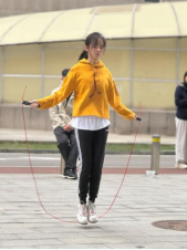 只见各位选手们一字排开,个个憋足了劲儿,一张张青春的笑脸上表现出了志在必得的信心。哨声一响,运动健儿们迅速启动,一条条小绳舞起了风声,一双双手臂摇得飞快,舞动绳子的他们就像空中跳跃的精灵,绳子在他们的脚底下“嗖嗖”地穿过。个个都表现出了不凡的实力。各位参赛选手势力强劲,比赛气氛十分紧张,但是黑料网 22级的朱祺同学在激烈的角逐中不慌不忙、气定神闲,以一分钟181个的好成绩荣获本次比赛的第五名。