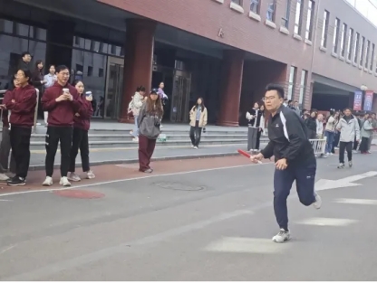 本项赛事作为下午的首场竞技,吸引了众多目光。赛前,同学们围在一起,彼此鼓励,共同秉持着“友谊第一,比赛第二”的体育精神,为即将到来的比赛注入了满满的正能量。随着裁判一声响亮的“开始”,比赛正式拉开帷幕。只见男、女两组的首位同学如同离弦之箭,紧握接力棒,单足大步向前蹦跃。在交接区,等待接棒的同学早已做好准备,他们提前伸出手,迈出步伐,眼睛紧紧盯着即将传来的接力棒。他们不仅展现了出色的运动技能,更彰显了良好的团队协作精神和人文体育风采!