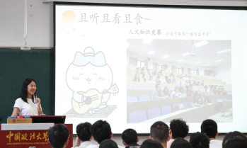 作为新闻通讯中心的部门工作人员,张莉婷上台宣讲。她表示,无论是新闻现场的实时摄影记录、新闻稿撰写,还是后期推送制作与发布,在院新这个充满活力的集体中,你都能得到系统学习和实践的机会。此外,张莉婷还分享了部门内部丰富的团建活动,从另一个侧面呈现出温馨有趣的部门生活,为本次招新宣讲画上了圆满的句号。