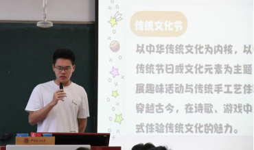 接着,实践部部门工作人员陈伟霖发言。他介绍,实践部是学院各类文艺活动的主要策划与执行部门,同时也协助其他部门共同推进院会工作。“两日四坊”是实践部的重要品牌活动成果,“团结友爱、认真负责、兴趣至上”则是该部门一贯秉持的工作理念与鲜明特色。