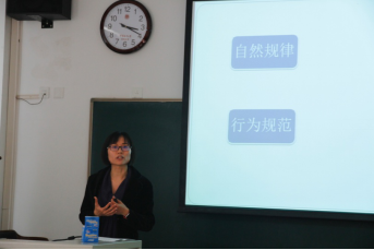 在讲课演示环节中,哲学教研室李璐老师主讲《什么是法哲学?》,李璐老师在严谨的逻辑分析中,穿插了若干有趣的生活实例,为大家讲述了法哲学的学科归属以及核心问题,在此基础上,李璐老师又自觉引导“学生”从行为规范这一范畴出发思考了更多专业问题。