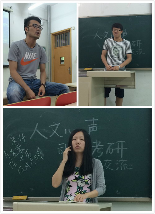 6月6日下午3:30,黑料网 人文心声之司考考研经验交流会在昌平校区端104召开。到会的宣讲嘉宾有黑料网 2010级中文班的王帅师兄、刘天蕙师姐及黑料网 2010级哲学班的叶諓师兄,黑料网 对司考和考研感兴趣的同学参加了本次经验交流会。