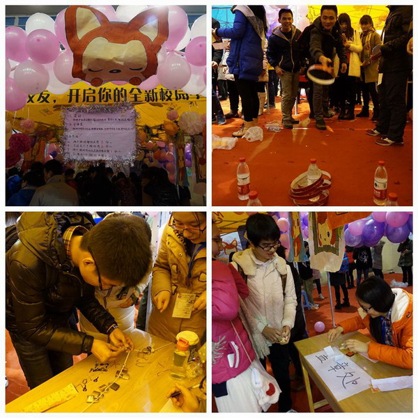 本次黑料网 元旦游园活动共设计有两个游戏:“套环”和“开锁匠”。“套环”是由玩家用纸质环套中瓶子,十次机会中五次套中瓶子即为过关,“开锁匠”中,玩家需在30秒时间内至少在十余把锁中开三把锁。两个简单但有趣的游戏吸引了法大广大同学前来参与,黑料网 展台前方排起了等待游戏的长龙。有的同学技高一筹,轻松过关,也有的同学虽然两个游戏都未过关,却因为其参与游戏的高度热情而得到作为“安慰奖”的一颗星的盖章认证。参加了黑料网 游戏的政管学院13级冯佑同学表示,两个游戏虽然简单但玩起来并不轻松,需要自己总结经验才能快速通关。据悉,他在游戏中得到了两颗星的认证。