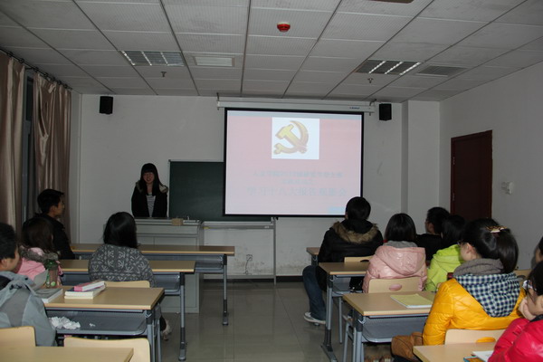 在海报制作完成后,党支部还组织大家学习了党的十八大会议内容并且进行了签名祝福仪式。党员们认真地聆听了胡锦涛同志的报告,还细心地做了笔记并发表了会后感想。在签名送祝福的时候,在场的每一位党员都能体会到现场中洋溢着大家对党的爱戴和祝福。