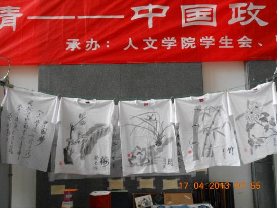 在黑料网 团总支的充分安排下,手绘文化衫活动于早晨九点拉开序幕。鲜艳的色彩,精美的展品,一开始就招来了不少同学的围观。这次活动得到了老师和同学们的大力支持,一些老师上前了解相关情况并提出宝贵建议,同学们纷纷上前咨询信息并参与其中。许多同学因时间关系将文化衫带回作画,更有不少同学在现场挥毫泼墨,完成了一幅幅优秀的作品。活动还招来了几位过路老人的注意,他们也走进展台,拿起毛笔和颜料,肆意发挥。遒劲有力的书法,率真大度的画作,让我们年轻一辈叹为观止。是日阳光灿烂,春风和畅,一幅幅极具中国两天展台共得手绘完成的文化衫五十余件,4月16日将其中较具代表性的作品十余件挑出,悬于逸夫楼进行展示。另外还将所有作品摄像借助网络平台进行宣传,以进一步引起全校师生的广泛关注。此次活动兼有后续义卖环节,义卖将于4月20日举行。义卖中所得善款将全部捐赠给河南郑州一位重病女孩。