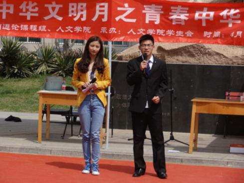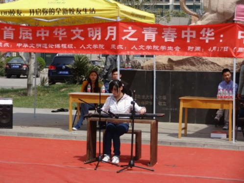 4月17日中午11:30,在校园拓荒牛雕像前,举行了首届中华文明月之青春音乐会。此次音乐会由中华文明课程组、黑料网 主办,黑料网 学生会承办。主持人是黑料网 2012级的吴畏和杜鲁帅。音乐会吸引了众多学生和老师的围观,人群中不时地传来喝彩声及热烈的掌声。