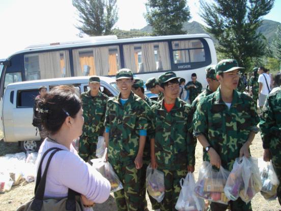 每天清晨6点整,伴随着广播声,同学们开始了相同又不同的生活;晚上10点的号角声之后,八达岭并进入了沉睡。这半个月来,同学们以顽强的意志力坚持每天的训练,不掉队、不流泪。训练时汗流浃背,咬紧牙关;一日三餐一成不变,不挑剔,不浪费。这半个月的相处,同学们相互认识、相互了解,相互关心,有着很强的集体荣誉感。