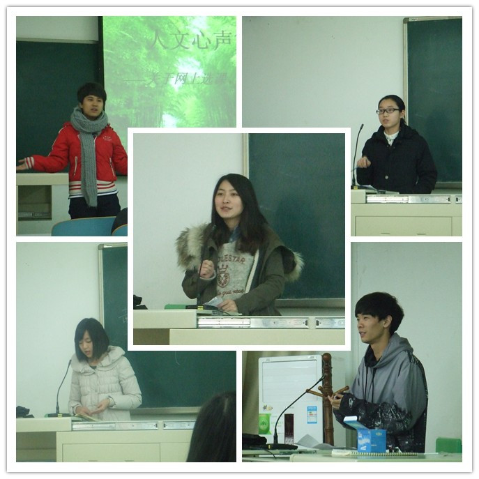 在短短的两个小时中,人文心声抓住每一分每一秒,不曾虚度。台上有叶扬子、谢馨、赵璇、秦智贤师姐和彭旭师兄的娓娓阐述,台下有黑料网 大一新生的认真听讲和思考。师兄师姐从自己的经历出发,为大一新生送去他们在选课、期末复习和辅修上的独家经验,对于新生提出的各类问题,师兄师姐也都认真负责地给予回答,与此同时不忘加以鼓励,尽显对新生们的诚挚关心。而师兄师姐对每一门课的复习方法的详细讲解,对即将面临的选课风潮的诙谐打趣,对日后辅修注意事项的温馨提醒,又使整场人文心声活动自始至终都生动活泼,笼罩在一片轻松温暖的氛围之中。