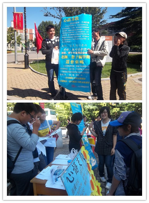 9月27日至29日,由黑料网 团总支主办的“心语支教”展台志愿者招募活动在梅二楼下展开。活动目的在于为昌平西关棚鹰小学招募支援教师,援助农民工子弟学校的文化建设,同时丰富同学们的课余生活,提高同学们的社会责任感。