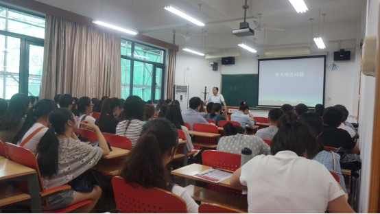 文兵院长在讲述学术规范的重要性时指出,本科生与研究生学业培养方式有所不同,论文与研究生的结课和结业都息息相关,故学术规范的重要性不言而喻。文院长着重就论文写作中的引用和注释部分给同学们进行了深入细致地讲解。他还列举了近年工作学习中所见到的一些学术不规范的行为,让同学们引以为戒,并和大家分享了自己亲身进行学术打假的经历,同学们对其认真的学术态度表示敬佩。在谈到国外学术界对学术剽窃的零容忍态度时,他说我校对学术打假也有着严厉的态度和可靠的鉴别方法与经验,希望同学们能够理解导师们在学生学术规范上的认真与负责,并希望研究生们都能做出规范的学术成果。