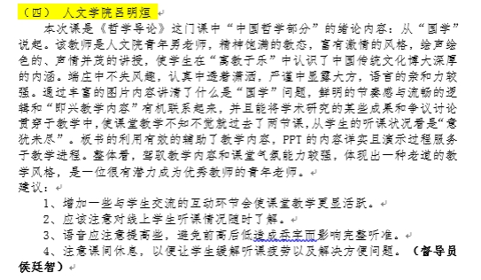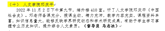 2022-2023学年秋学期,受疫情影响,我校本科教学工作在学期中期由线下授课临时调整为线上,督导组全体成员及时调整工作形式,尽职尽责地完成了听评任务。