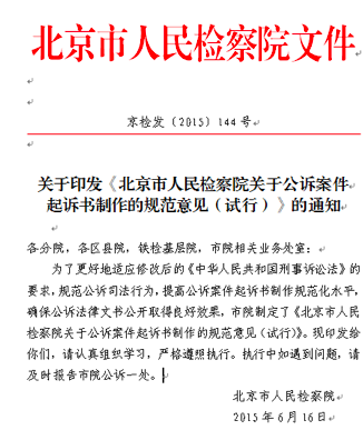 法律语言研究中心的王洁教授、张彦副教授、崔玉珍副教授受北京市人民检察院的委托,对北京市人民检察院(含区县)的公诉法律文书进行规范化的实证研究,并成立了“公诉法律文书规范性问题实证研究”项目。2015年,该项目取得了重大进展,北京市人民检察院在项目相关报告的基础上于6月份向全市各级检察院印发了《北京市人民检察院关于公诉案件起诉书制作的规范意见》(京检发〔2015〕144号文件),这在法律实践界引起广泛的热议,也受到了很多法律人的好评和肯定。《北京市人民检察院关于公诉案件起诉书制作的规范意见》也受到了最高人民检察院的肯定,全文照发(高检诉〔2015〕18号文件),曹建明检察长也给予了肯定,认为这“把学术成果直接运用到了司法实践中”。课题组根据项目的研究编撰了《检察机关刑事起诉书制作要义》一书。