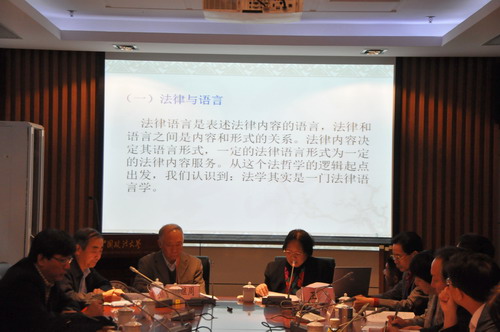 法律语言研究中心主任王洁教授在做大会发言时认为,“法律、语言、法律人,是一脉相承的融合体。”因为法律语言既是法律的载体,也是法律人权力的存在;法律语言既是法律人的办案工具,更是法律人法治思维和法律权力的体现;法律人的法治思维,始终以法律为依据,思路从法律文本开始,以法律的方法在法律运行实施的全过程中,法律人的法治思维又都流向法律文本。